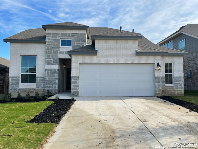 Two story home 2,435 square feet with master and guest suite on the first floor. Home has four bedrooms three baths, game room PLUS an oversized 2-car garage. Chesmar quality with Zip system and Cellulose insulation and three sides masonry brick and stone. Home is located in the quiet Highland Grove community in New Braunfels, Texas. Community offers a pool and park with easy access to I-35 Interstate. **HOME IS UNDER CONSTRUCTION. ESTIMATED JAN 2022 COMPLETION **