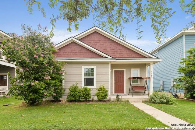 Welcome to this delightful single-family home located in the heart of San Marcos. This well-maintained residence boasts a cozy and inviting exterior, complemented by a well-manicured lawn and a charming front porch with a swing, perfect for relaxing and enjoying the neighborhood. Step inside to an open-concept living and dining area, featuring large windows that allow natural light to fill the space, creating a warm and welcoming atmosphere. Adjacent to the dining area, the kitchen offers ample cabinet space, modern appliances, and a functional layout, making meal preparation a breeze. The back yard features a spacious patio slab, perfect for outdoor dining, barbecues, or simply relaxing in the sun. A sturdy wood fence surrounds the property, providing privacy and a safe area for children or pets to play. Located near local schools, parks, and shopping centers, offering convenience and a great sense of community. Schedule your showing today!