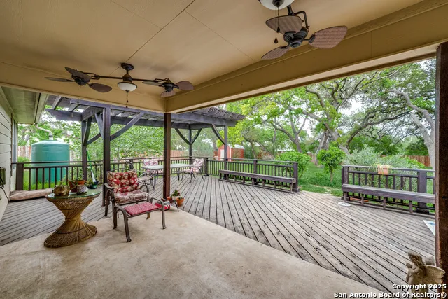 Nestled on a spacious 0.5-acre lot, this exquisite earth-toned rock home perfectly blends rustic charm with modern comfort. Step inside to soaring ceilings and an open floor plan that welcomes natural lighting throughout. This 4-bedroom, 2-bath home offers both functionality and style, featuring granite countertops in the kitchen, a formal dining area for special gatherings, and ceramic tile flooring throughout the main living spaces. The oversized primary suite is a true retreat, complete with outdoor access and plenty of privacy. Step outside and unwind in your backyard oasis, shaded by mature trees and perfect for entertaining with a spacious deck ideal for warm summer nights. With numerous upgrades throughout, this property is a must-see-be sure to ask for the full feature list! Don't miss your chance to own this piece of Hill Country paradise-schedule your showing today!