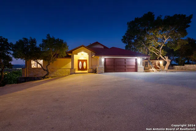 Absolutely stunning views that are one of a kind in the Texas Hill Country easily enjoyed by the wrap around porch to give you a 180-degree view experience!!!!! Incredible 0.97-acre custom built home boasts of 2668sqft living space, 3 bedrooms with a study, 2.5 baths, beautiful stucco native stone exterior, featuring endless amenities such as metal roof, gated and fenced all around, electric car plug in the garage and drought tolerant landscape! Living and entertainment are easy to do with a jacuzzi room accessed only from the master bedroom that overlooks the city and a sauna to enjoy after a long day's work! The chef's kitchen is a dream with lovely oak cabinets, gas cook top and double ovens! Perfect sanctuary to host your large dinner parties while sitting around a stone wrapped wood burning fireplace and enjoy your view! Plenty of privacy and comfort while being near the city and close to all the city amenities. NO HOA!! Beneath the house is an unfished basement, able to be used for storage or adding more living space!