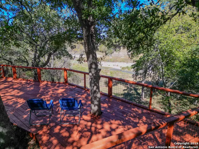 Discover your own Riverfront Retreat on a peaceful 1-acre lot along the beautiful Medina River, highlighted by an impressive 288-foot deck overlooking the water-perfect for relaxing and soaking in the Hill Country scenery. The charming one-bedroom cabin offers everything you need, including a kitchen, full bath, inviting porch, and an outdoor shower for a true getaway feel. Guests and travelers will appreciate the full-service RV hook-up, complete with an 8' x 30' deck and 20' x 30' metal cover for comfort and shade. Additional features include a 16' x 30' carport for vehicles and boat storage, a storage shed, and a welcoming outdoor area with a fire pit and picnic table for gatherings under the stars. An 8-foot privacy fence encloses the front of the property, while the back remains open to nature and river views. With fiber internet installed, this retreat blends rustic charm with modern convenience-an ideal escape or investment in the heart of the Hill Country.