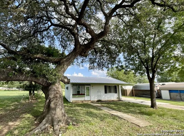 Affordable, adorable, and full of possibilities! Welcome to 406 Hackberry in Bandera, TX, a delightful 2-bedroom, 1-bath cottage that's full of character, comfort, and opportunity. Whether you want a full-time residence, a peaceful weekend retreat, or a stylish short-term rental, this home is ready for you. Shaded by a majestic Century Oak and a mature Pecan tree, the front yard is a serene welcome to you and the area deer. Relax outdoors under the covered carport-perfect for a shaded parking spot or your own outdoor living area with twinkle lights, comfy seating, and patio dining. Step inside to discover an interior with large windows, designer flooring, a charming beadboard ceiling, a breakfast bar eat-in kitchen, and ceiling fans throughout. The updated kitchen includes an almost never used 2022 gas range with central griddle, an on demand water heater, and a stainless steel fridge that stays. The Jack-and-Jill bath connects the two bedrooms, both of which share a well-placed closet. Outside, the large backyard is full of potential. Use your imgaination to plant a garden, add a fire pit, storage shed, or a garage. The utility room is conveniently located just off the carport with easy access to the house. Best of all, this home sits in the heart of Bandera, the "Cowboy Capital of the World." Just blocks from Main Street and walking distance to Bandera City Park and the Medina River, you'll be steps away from fishing, kayaking, boutique shopping, live music, museums, and more. With local parades, cowboy reenactments, a vibrant night life with world class entertainment, and community events year-round, life here is never boring. 45 minutes to San Antonio's Medical Center, 25 minutes to Kerrville, and just over an hour to San Antonio International Airport. Don't miss the chance to make it yours!