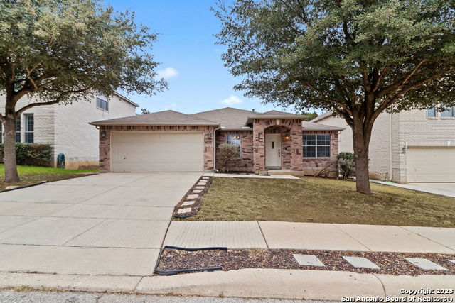 Come home to this beautiful one story with splendid natural lighting, a home office, updated island kitchen, gorgeous wood look tile floors and NO city taxes! You will love the double ovens plus. . . BONUS - the microwave also has an oven setting! With three ovens, you can get creative in the kitchen to your hearts desire and still have all of your dishes piping hot! Cheery and bright with a floor plan that flows perfectly for family gatherings and get togethers. All new Kitchenaid stainless appliances, backsplash and kitchen hardware were installed in 2020 along with kitchen faucet and garbage disposal. The refrigerator is fabulous and stays with the home! The flatscreens in the master and the study/office also stay! The dining chandelier was just installed in 2022. Both toilets also replaced in 2020 with the flooring install. There is an awesome storage shed in the back that could be converted into a studio/workshop! The fence was replaced in 2020 with reinforced cement posts. This is an ideal lock and leave property with easy maintenance and intimate yard. The community is a winner with highly desirable schools in Northeast ISD, a wonderful pool and pavilion, large sports courts and impressive playground. Beautiful location in NE San Antonio near the renowned JW Marriott Resort, Spa and Golf, hospitals, restaurants and shopping at the Village at Stone Oak.